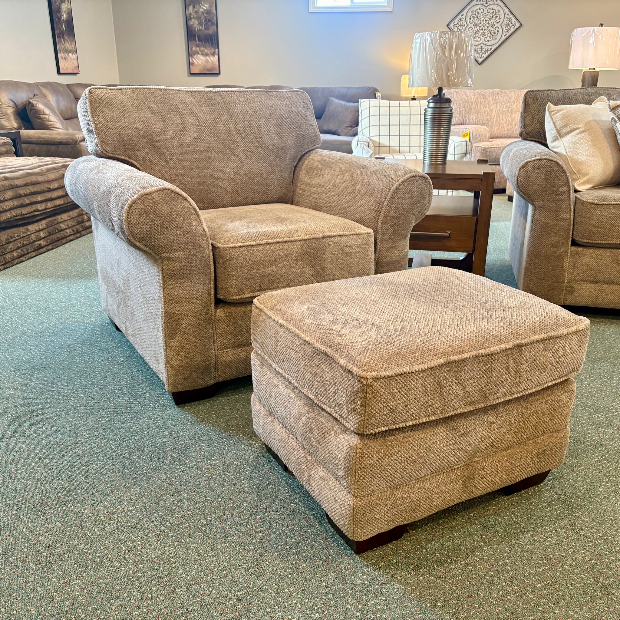 Our Brantley collection is a transitional group with quite a bit of casual flair that will look great in any home. With its rolled arm and matching welt accent, you can't go wrong! Dress is up or down with your choice of fabrics.